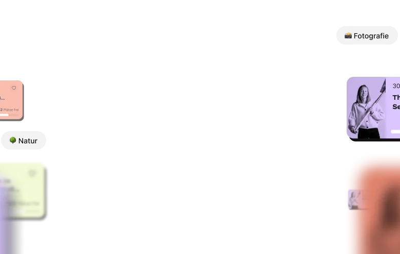 Mit den wichtigsten Informationen auf einer Kachel behältst du den Überblick. Wir zeigen dir, was in deiner Umgebung abgeht und was zu dir passt.